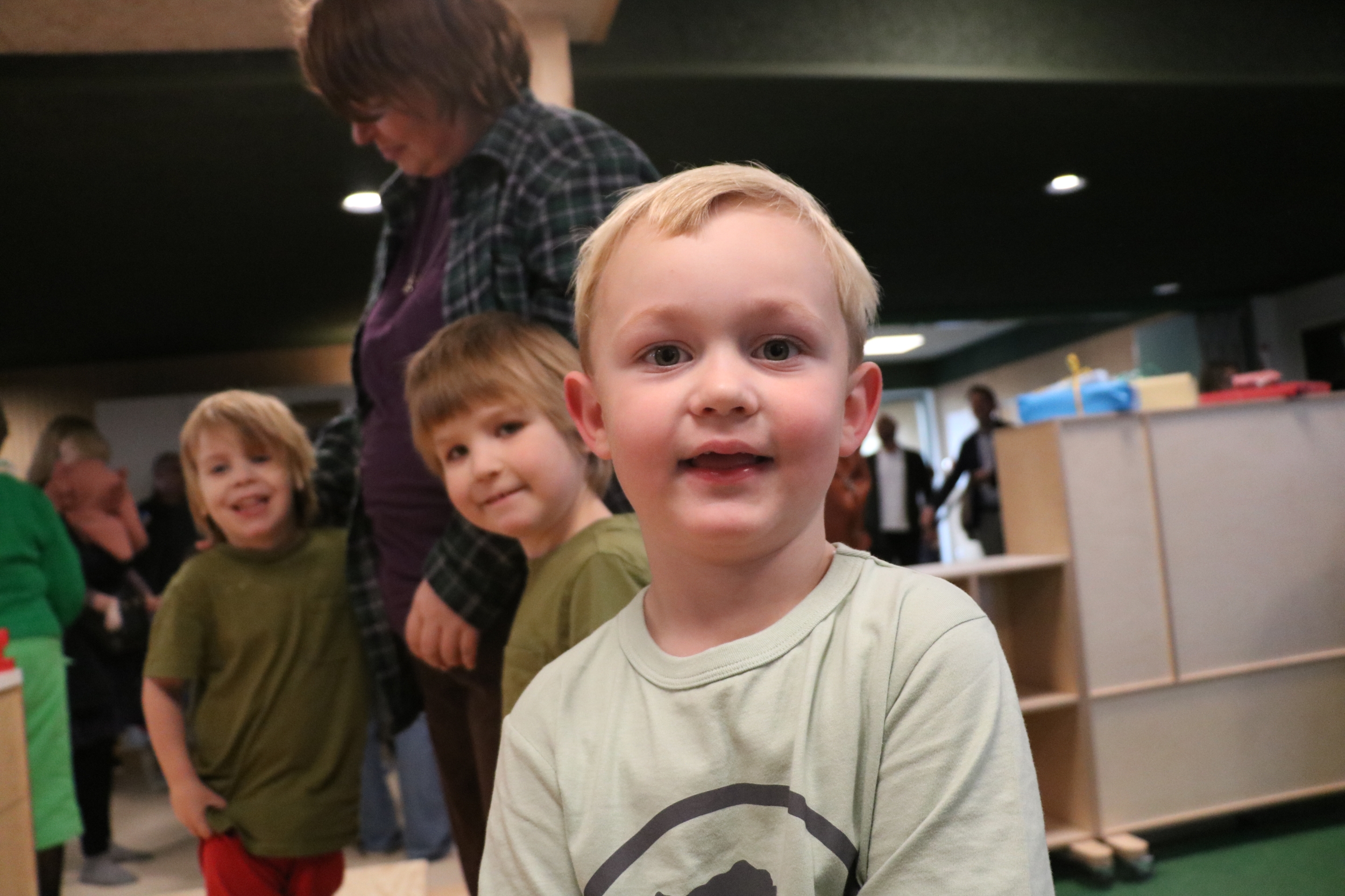I hvert fald nød de opmærksomheden, det store fællesrum, de mange legepladser og tullede rundt mellem talerne, indtil de to røde snore skulle klippes.